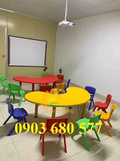 Chuyên cung cấp bàn ghế nhựa cho bậc mầm non, mẫu giáo. Giúp bé ngồi đúng tư thế, phù hợp với lứa tuổi và tránh các nguy hại về mắt (cận thị, loạn thị), xương phát triển không bình thường,... Với thiết kế kiểu dáng nhỏ gọn rất thuận tiện cho việc sử dụng trong không gian nhỏ. Đa dạng về mẫu mã, kích thước. Màu sắc tươi sáng, bắt mắt giúp cho bé cảm thấy thích thú khi học tập, vui chơi. Có 4 màu: vàng, đỏ, xanh lá, xanh dương. Bàn ghế nhựa trẻ em được sản xuất từ chất lượng nhựa bền, đẹp, chắc chắn và đặc biệt an toàn cho bé. Góc bo, cạnh bàn ghế nhựa mầm non được thiết kế và giám sát rất kỹ trong quá trình thi công, đảm bảo an toàn 100% cho bé. Liên hệ tư vấn: CÔNG TY TNHH THIẾT BỊ MẦM NON ÁNH DƯƠNG Hotline: 0903 680 577 (Zalo, Phone) Website: www.thietbimamnonanhduong.com Facebook: www.facebook.com/Thietbigiaoducmamnonvn/